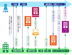 ⑨引き渡し後、電力会社様とお客様にて電力需給契約を結んでいただきます。