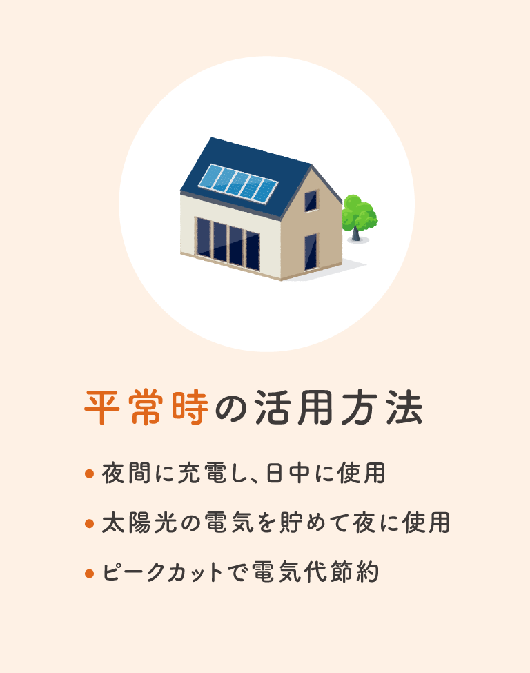 蓄電池があれば、さらに安心・快適な暮らしが実現。 もしもの時にも電気エネルギーを確保できる、賢い選択です。
